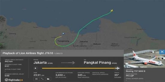 El portal de seguimiento de vuelos Flightradar muestra, en un mapa, la trayectoria del aparato, un Boeing 737 Max 8, que, tras despegar en dirección suroeste, gira hacia el sur y luego hacia el noreste, antes de interrumpirse sobre el mar de Java, no muy lejos de la costa.